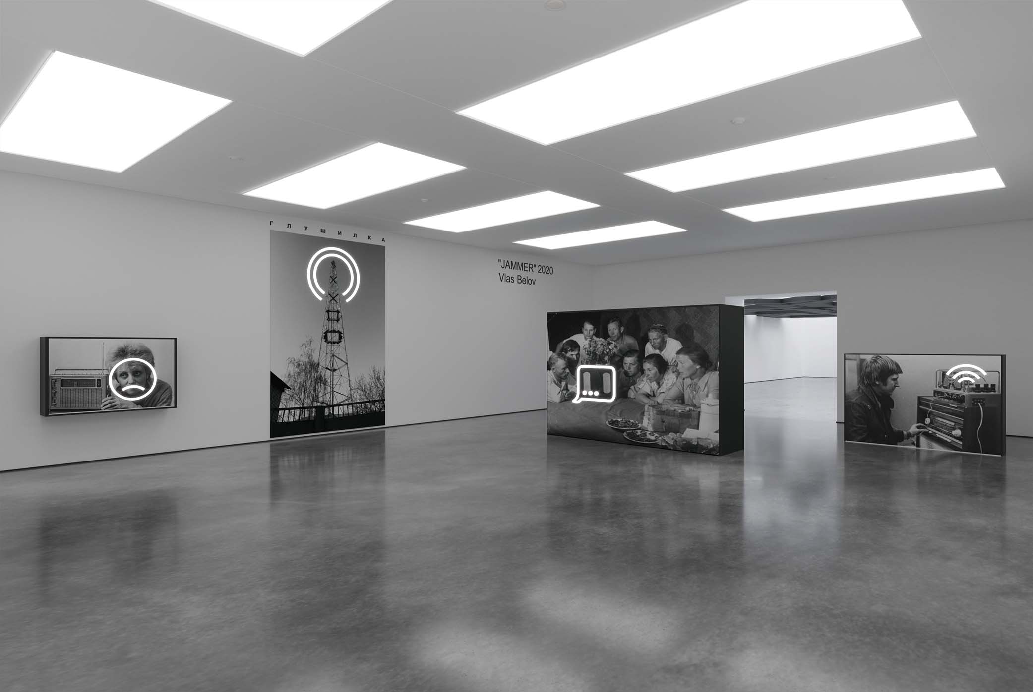 VR-action-exhibition "Glushilka" 2020 in the format for passers-by. The main element of the project is the Soviet antenna "jammer" as an integral installation, which served as an information block for Western broadcasting. Today it acts as a stand for transmitting antennas. An attempt to investigate the availability of information flows in different eras. Its blocking during the times of totalitarianism with the help of radio noise and today's abundance of information has turned into a free flow of meanings with many ideologies and beliefs. The project includes a VR space with photo and audio, located in the recreated 3d gallery Gagosian Gallery New York, USA. This approach blurs the line between reality and distance, a viewer on the street in Kharkov (using a QR code and virtual reality glasses) finds himself in a gallery located in America. It is also interesting to consider what else this structure can carry possible visual functions on the example of virtual experiments, using the architecture of antenna trusses as a decoration of the urban Soviet style. Materials are taken from available Internet sources. Author Vlas Belov