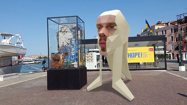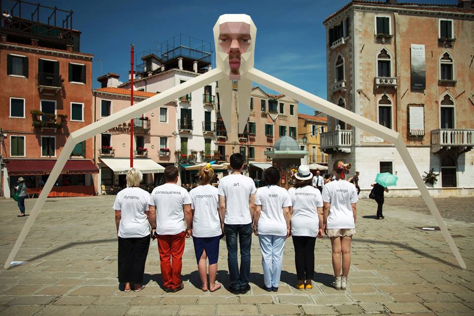 Virtual post-performance № 5. The reality of the events of La Biennale di Venezia. Author Vlas Belov 05/09/2015 The desire to capture yourself against the backdrop of what is happening and the endless run for the news feed, selfies as a means or already a goal. Moving the most necessary for a selfie at a distance, this is the head and face, realized using a 3D program. To be everywhere, everywhere and at any time, to take on a different shape and volume, a virtual "field" for experiments and ideas.