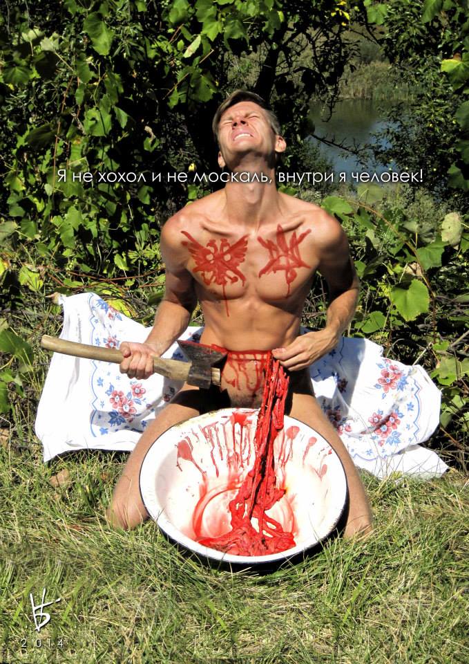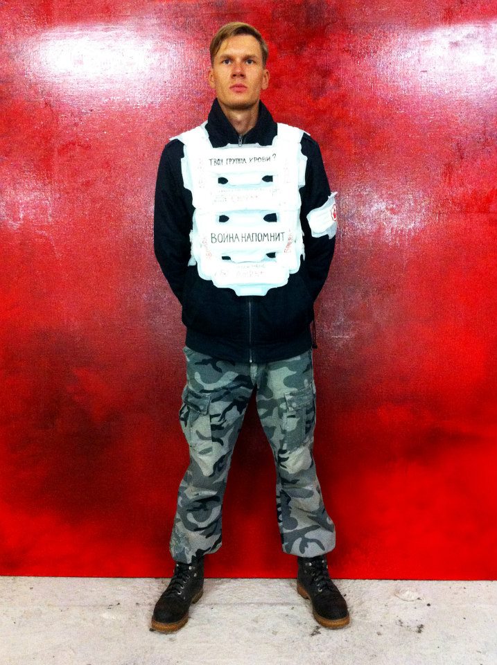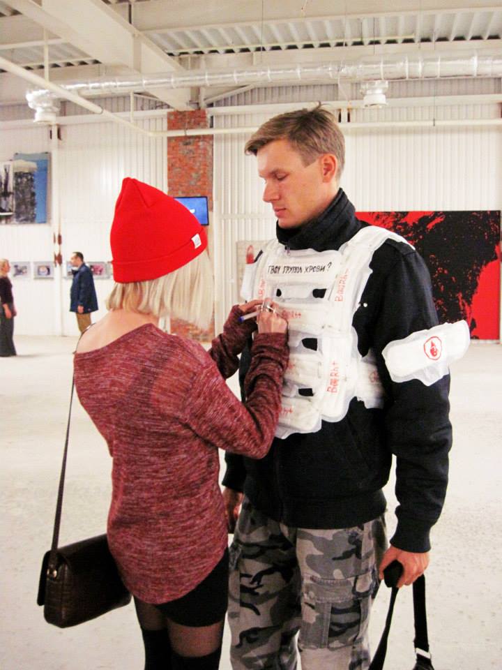2014. Communicative performance “War will remind” or “What is your blood type?”, at the Exhibition “War is she”, Kharkiv.