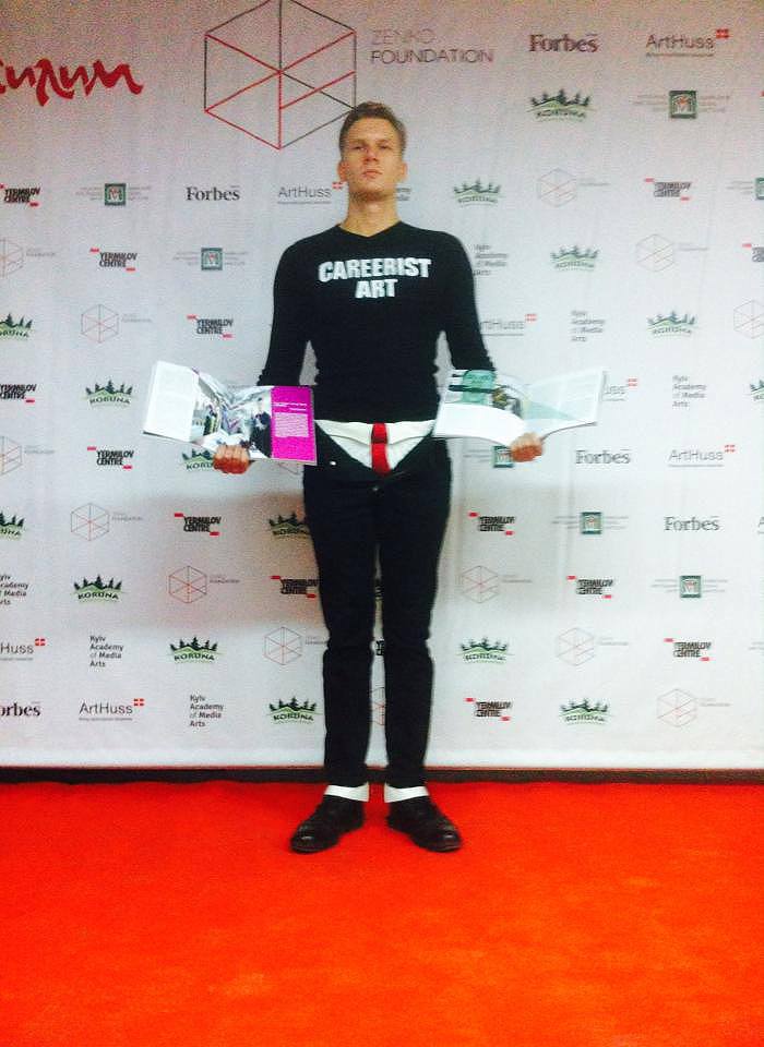 2016 “Careerist in Art” or “Art of Careerism” Feshen-performance pants “Mr. Careerist” at the “KILIM” exhibition at the Ermilov Center.