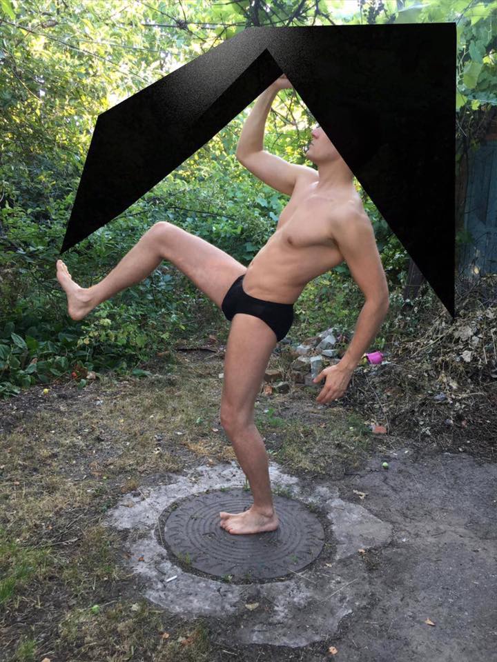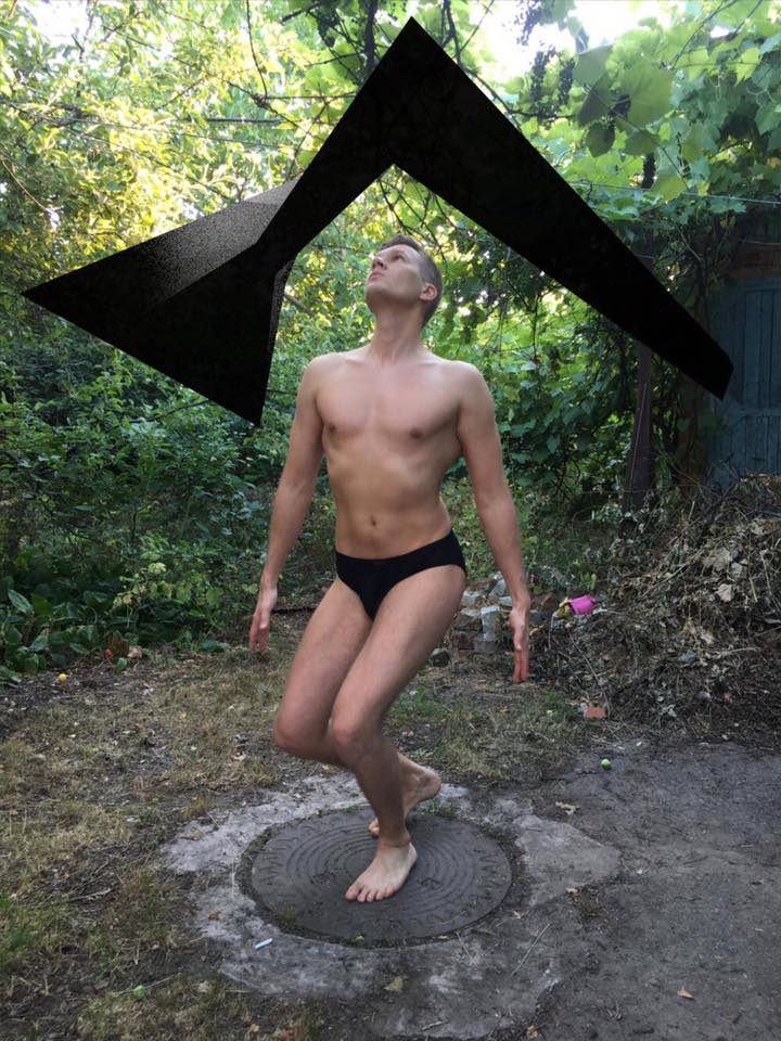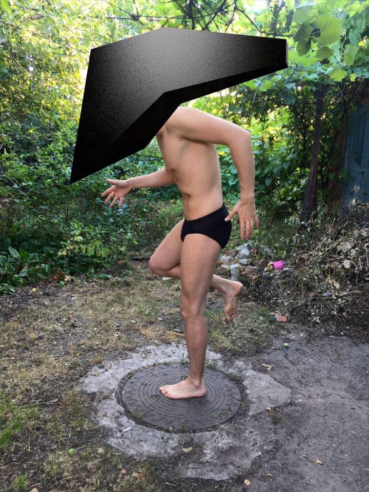 Photo performance "Working with virtual" 07.07.2017 Combining real, material and virtual minimum volume with body movement. Creation of the effect of fluctuations of digital volume and real flesh, the difference in structures gives balance to the general.