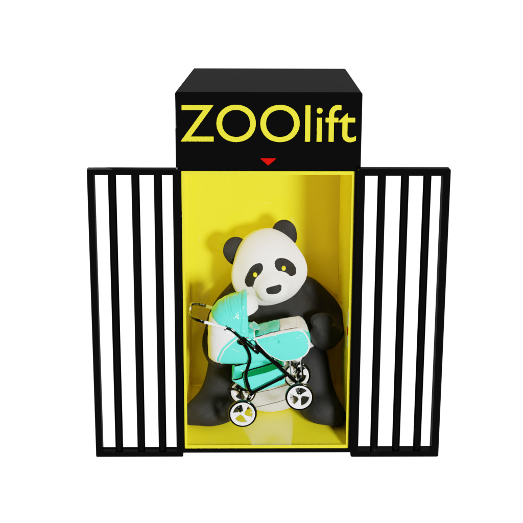 Символическая AR акция возле Харьковского зоопарка 2021 г. Проект об отношении человека к человеку через призму животных. 16 августа в Харькове произошла жуткая авария, слетел лифт с коляской, родители с ребёнком успели выйти. Эта информация не стала большим событием так как такое происходит не редко, ну и повод не хайповый. Я стал отцом и особо чувствую ответственность за жизнь ребёнка, а на фоне строительства зоопарка (потрачено 1,5 миллиарда гривен) где по сведениям «отмывались» миллионы и переделывались объекты по многу раз (это всем ясно), приходишь в ужас как неэффективно используются средства, не говоря уже об эксплуатации животных.